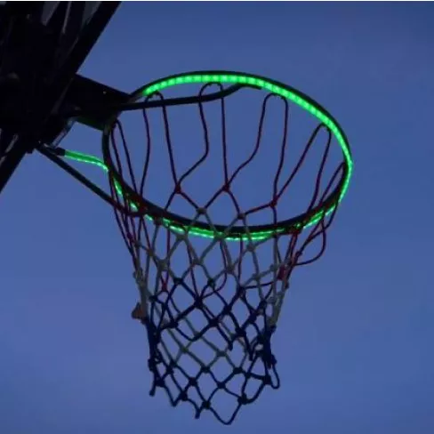 I ordered this basketball hoop lights for our portable hoop in the yard. Firstly I was afraid that the lights will not fit our hoop, but when we received the item, we found it just fit the size of our hoop. And there are 12 zip ties, 2 pieces of 3M double-sided tapes to install the lights. My two kids do not like to do any sports, but I like playing basketball very much. So in order to encourage my kids to do some sports, I bought a portable hoop and this rim lights. After I installed the lights around the basketball rim, I began to shot the ball into the rim, then the light glow up instantly. My two kids were fascinated by the amazing and cool light effect. Then they tried to shoot the ball themselves, when they started, they could not stop. Finally, my two kids love the sport of basketball playing now because of this cool basketball hoop lights. All in all, I am very satisfied with my purchase this time!