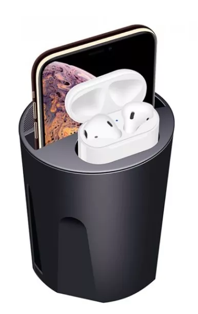 Actually bought this for my wife and she loves it, her phone case is just the right size to slide in without feeling jammed in and it is convenient to be able to charge the airpods at the same time. Would recommend to anyone looking for a cup shaped charger.