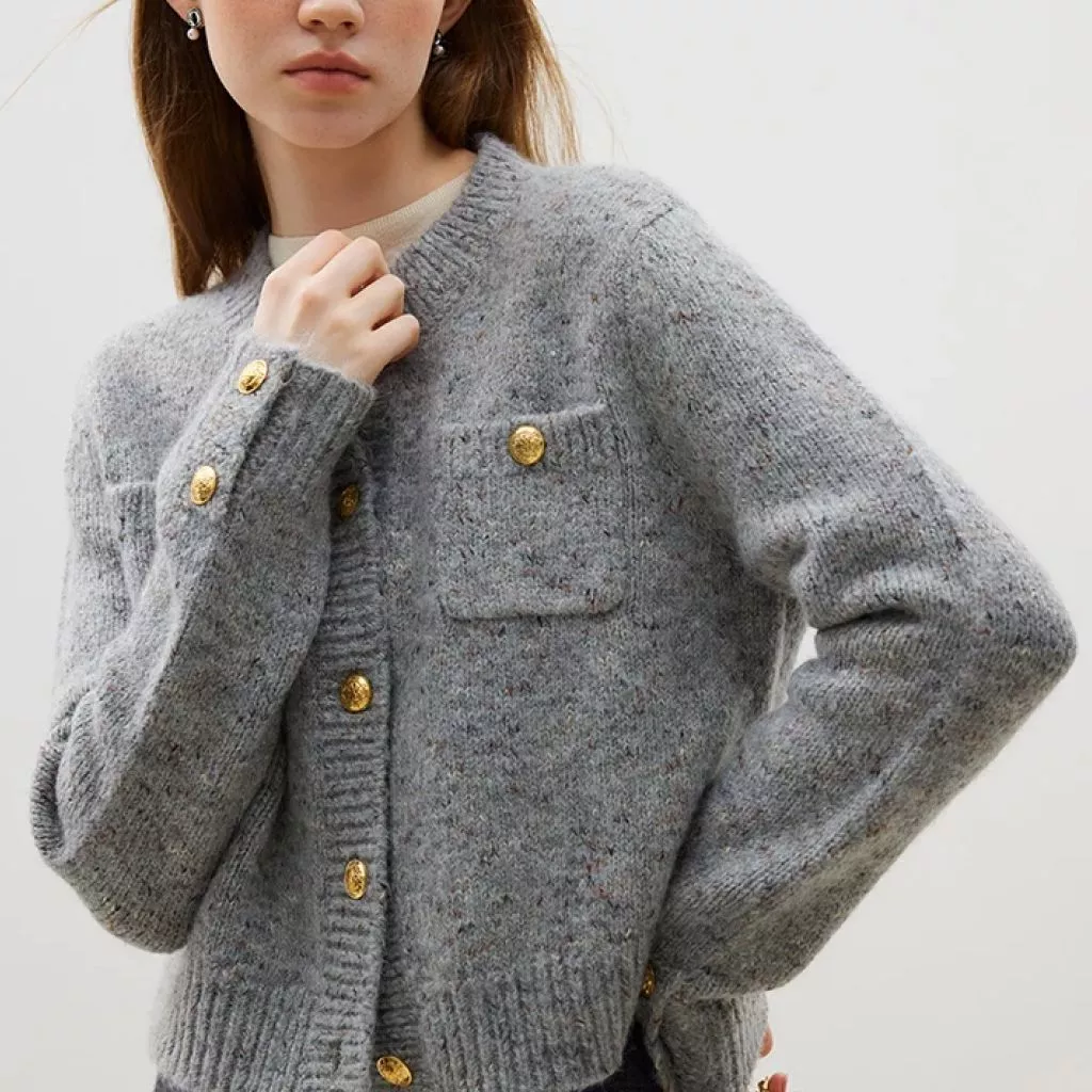This winter essential boasts a solid pattern, making it versatile for various occasions. Whether you’re heading to the office or a casual outing, the Wool Women Short Knitted Cardigan effortlessly complements your style. The mental button design adds a charming detail, setting it apart from ordinary winter wear.